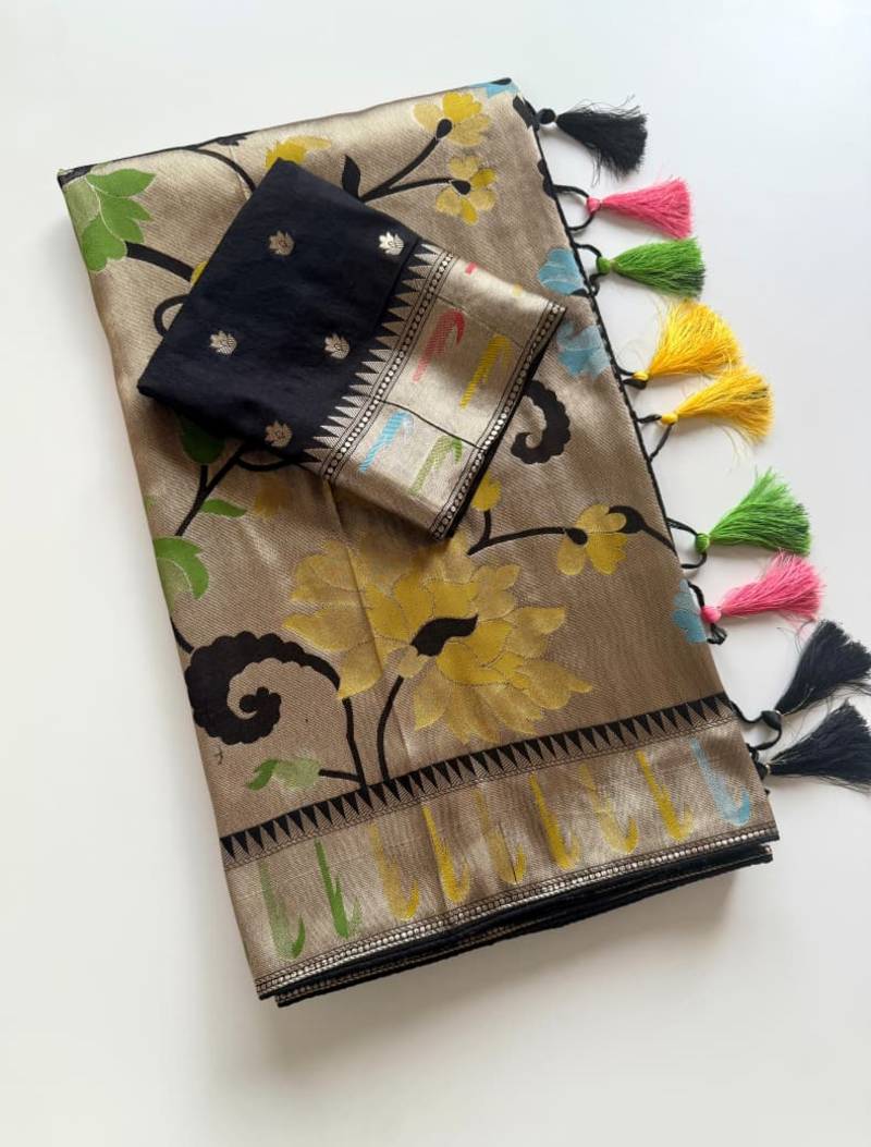 Black Color Paithani Jari Weaving Tissue Viscose Saree