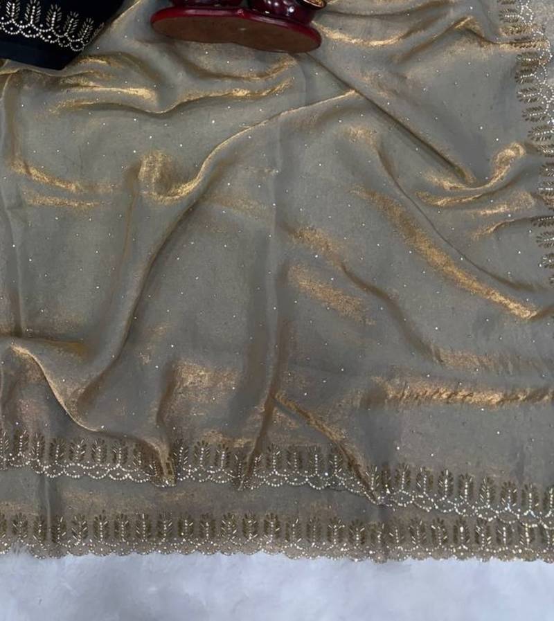 Work :- Original Jarkhan Diamond Work In SareeBlouse :- Beautiful Jarkhan Diamond Work In Space Silk Fabric