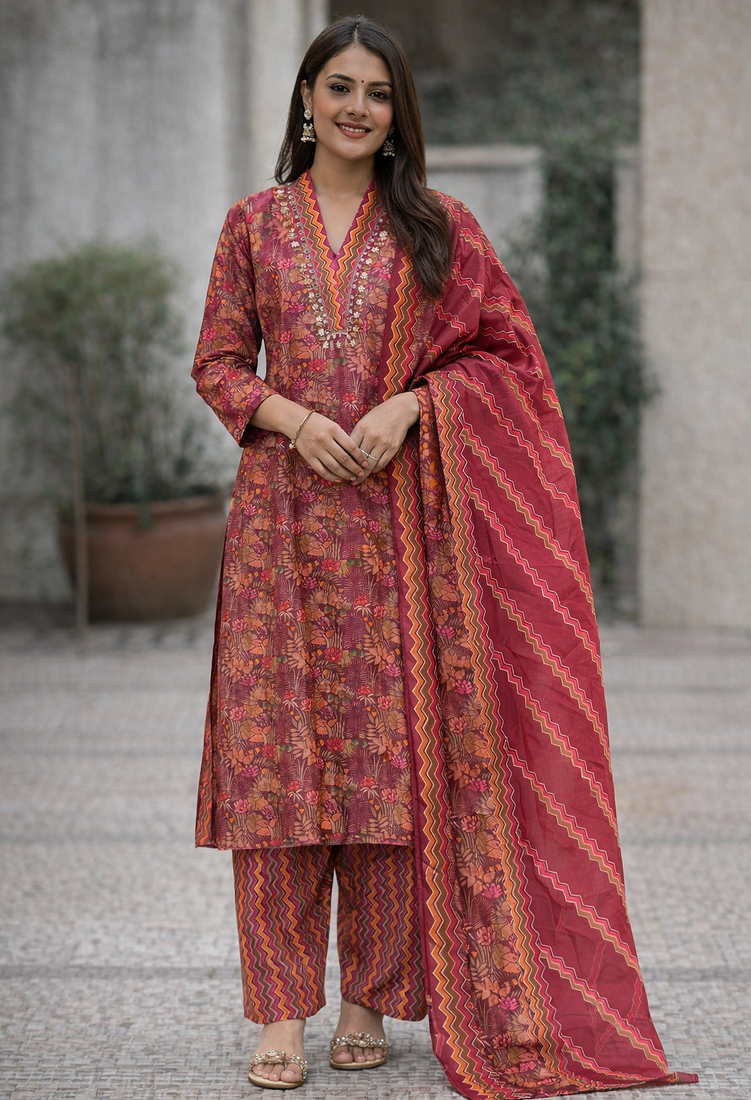 • Color : Maroon • Style : Pyjama • Fabric : Silk Blend • Length : 39 Inch Dupatta Details