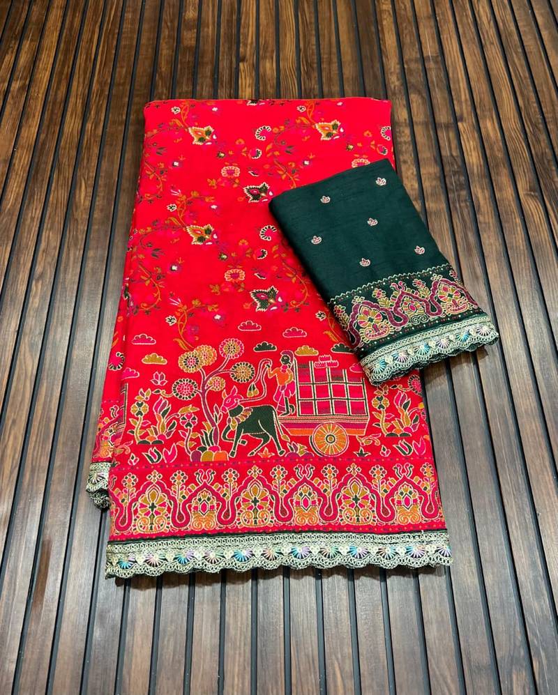 • Border : Designer Border • Color : Red • Fabric Of : Pashimina Silk Blouse Details