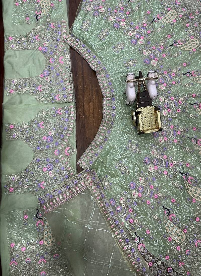 • Style : A Line Lehenga • Fabric : Net • Color : Sea Green • Work : Sequins Dupatta Details