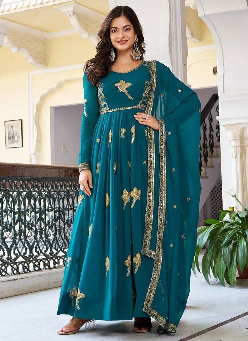 Length : 2.2 Meter• Product Id : 4738335 • Package Details : 1 Top/1 Bottom/1 Dupatta • Type : Wedding Salwar Suits • Occasion : Wedding • Work : Embroidered • Type : Sequins Work • Look : Traditional • Sleeve : Full Sleeve • Neck Style : U Neck • Color : Teal • Fabric : Faux Georgette • Stitching : Stitched General - Color and Texture may have slight variation. This happens because of photography.