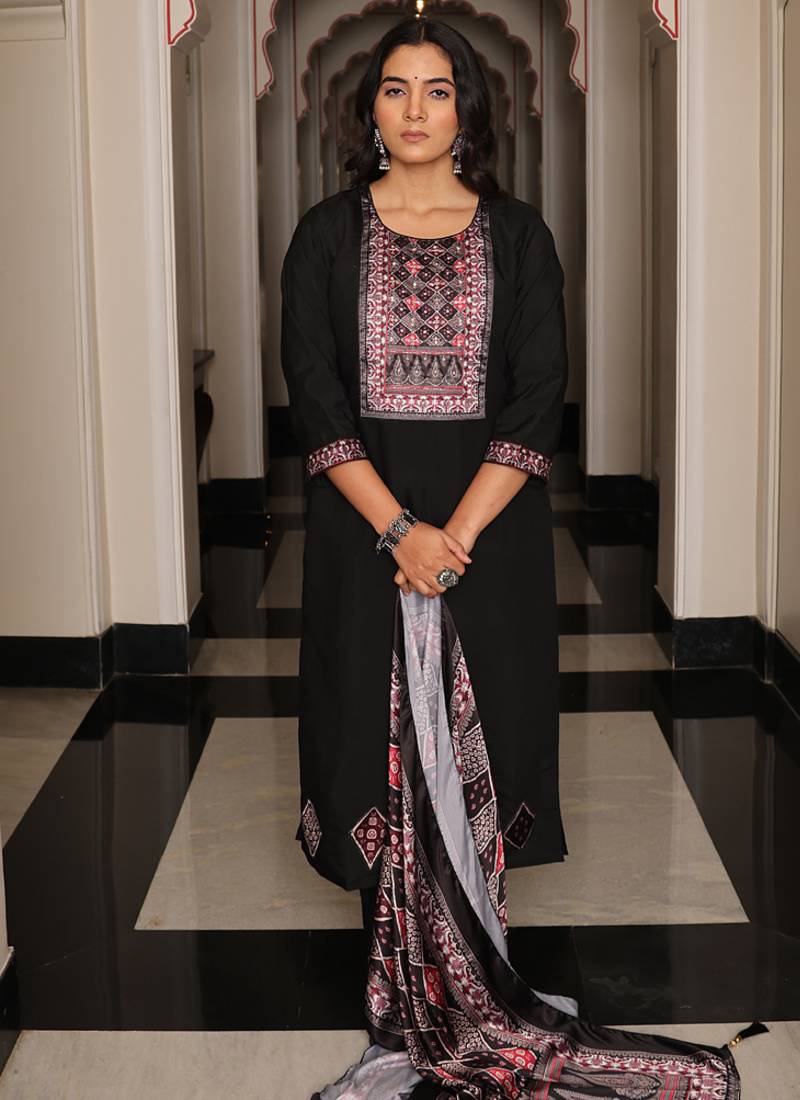 make a bold statement with this sophisticated black viscose simmer salwar suit, expertly designed for women who love dramatic, elegant ethnic fashion. this complete three-piece ensemble combines premium fabrics, intricate embroidery, and contemporary detailing for an unforgettable look.