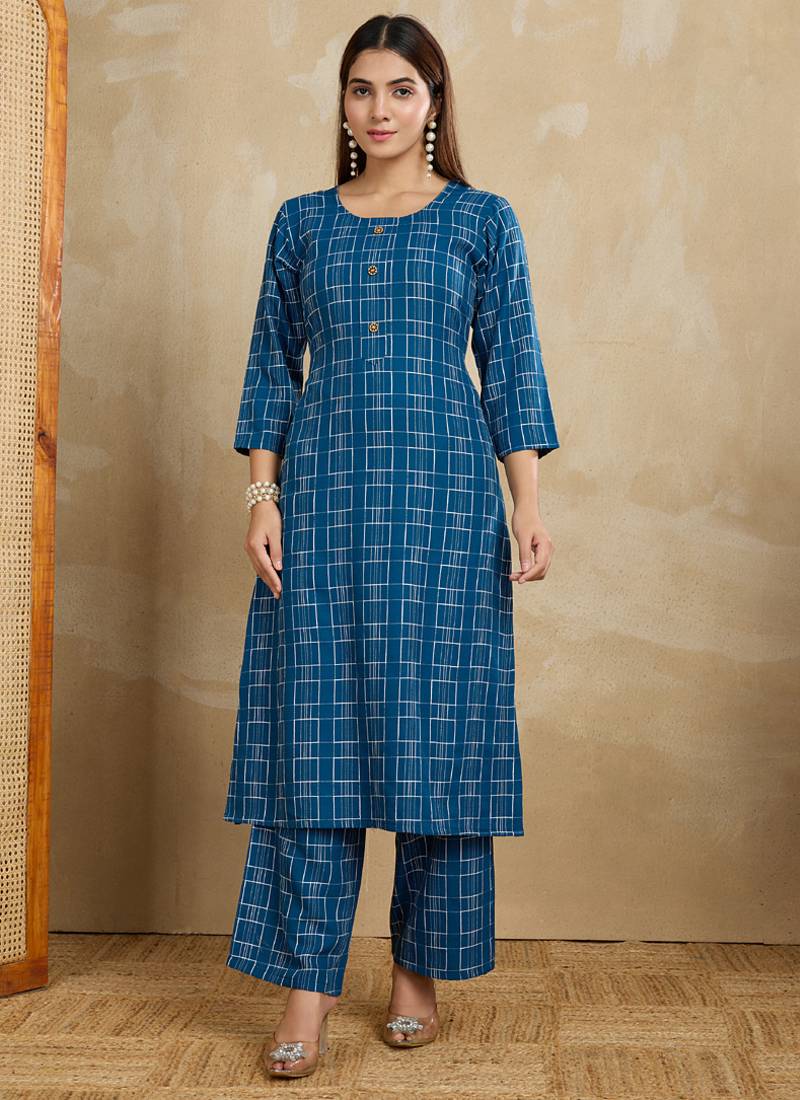 Paired with matching printed pants, the coordinated look creates a balanced and stylish ensemble.lightweight fabric ensures all-day comfort,Ideal for festive gatherings, office wear, or daytime outings, this kurti set blends traditional charm with contemporary simplicity.