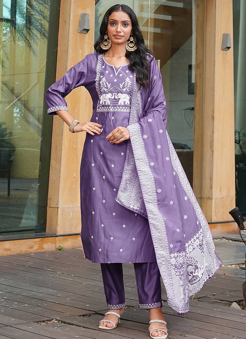 Lavender Art Silk Embroidered Kurta Set Stitched