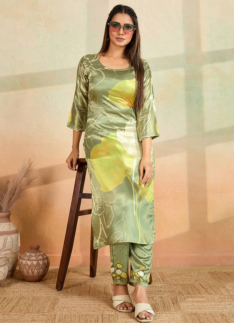 Mahendi Green Printed Cotton Reyon Kurta Pant Set Stitched