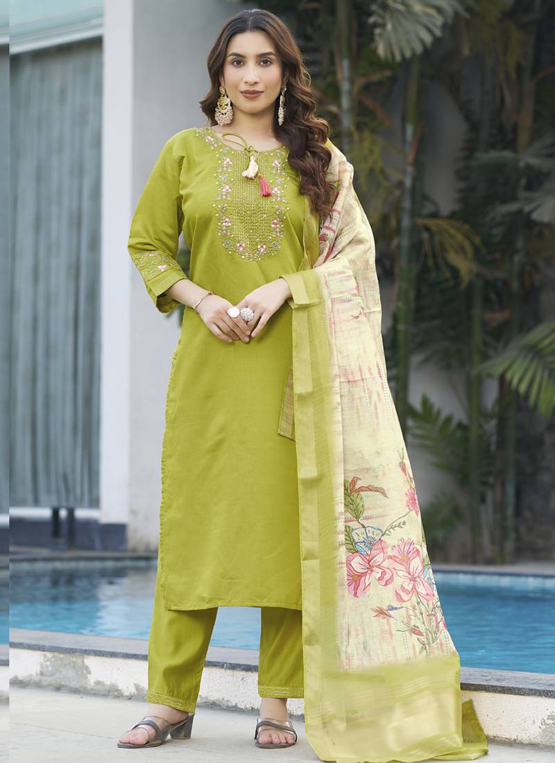 • Product Id : 4671532 • Package Details : 1 Top/1 Bottom/1 Dupatta • Type : Kurta Sets • Occasion : Ceremonial • Type : Hand Embroidery • Sleeve : Elbow Sleeve • Neck Style : Round Neck • Fabric : Viscose • Color : Parrot Green • Work : Thread Embroidery • Stitching : Stitched Payments [+]