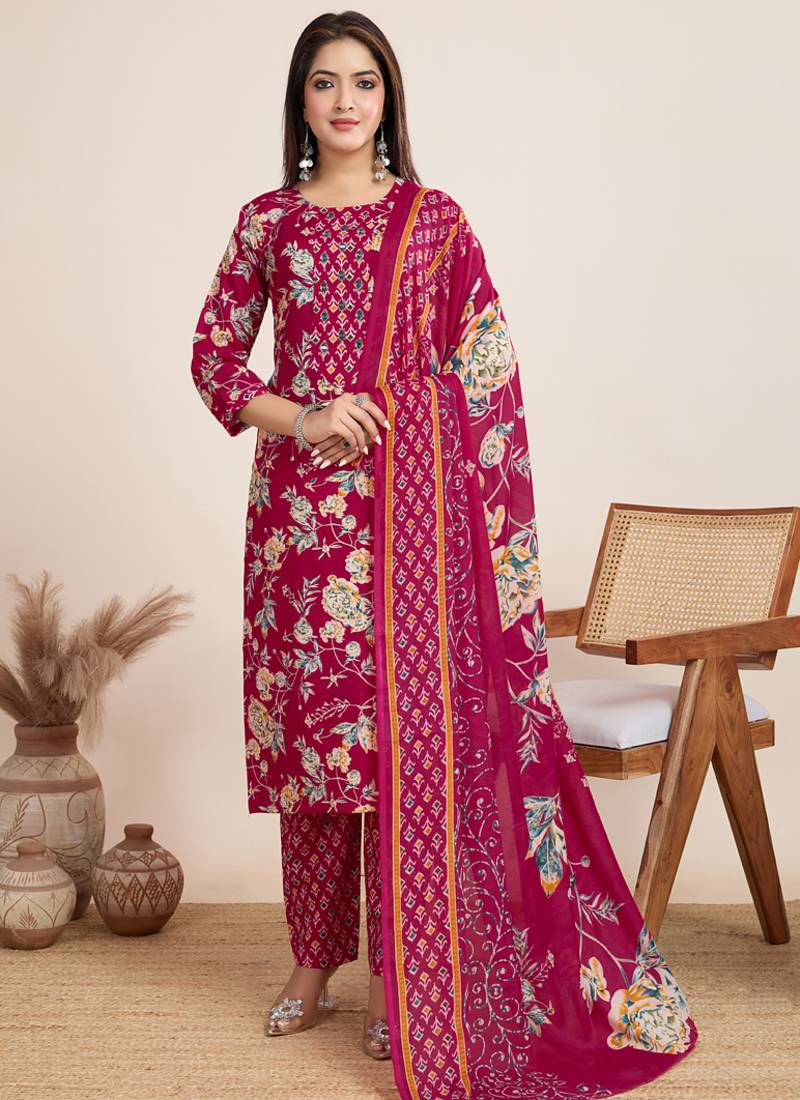• Product Id : 4706006 • Package Details : 1 Top/ 1 Bottom/ 1 Dupatta • Type : Kurta Sets • Work : Printed • Sleeve : Elbow Sleeve • Neck Style : Round Neck • Fabric : Cotton • Color : Pink • Stitching : Stitched Payments [+]