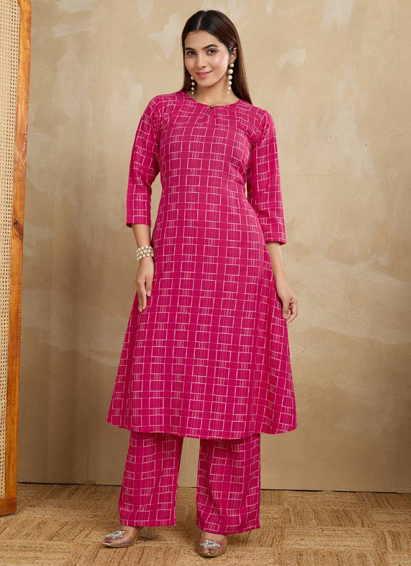 • Product Id : 4706040 • Package Details : 1 Top/ 1 Bottom • Type : Kurta Sets • Work : Printed • Sleeve : Elbow Sleeve • Neck Style : Round Neck • Fabric : Cotton • Color : Pink • Stitching : Stitched Payments [+]