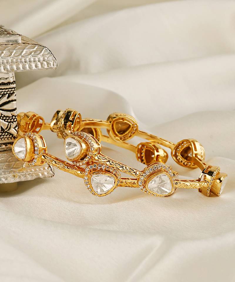 • Product Id : 4693616 • Package Details : 1 Bangle • Type : Bridal Bangles & Bracelets For Women • Occasion : Wedding • Jewellery Work : Kundan • Color : Gold • Plating : Yellow Gold • Base Material : Brass Payments [+]