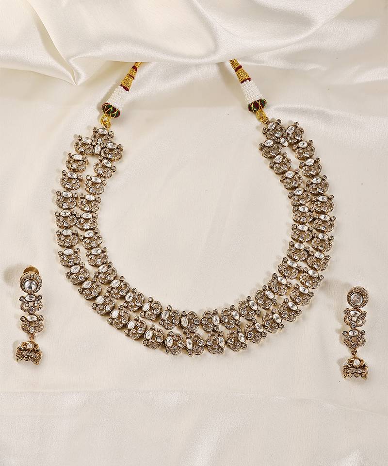 This Gold Plated Kundan Necklace Set Exudes Classic Elegance And Traditional Charm. Featuring Intricate Kundan Craftsmanship With A Radiant Gold Finish, It Adds A Regal Touch To Any Ensemble. Perfect For Weddings And Festive Occasions, It Enhances Ethnic Wear With Timeless Beauty And Refined Sophi