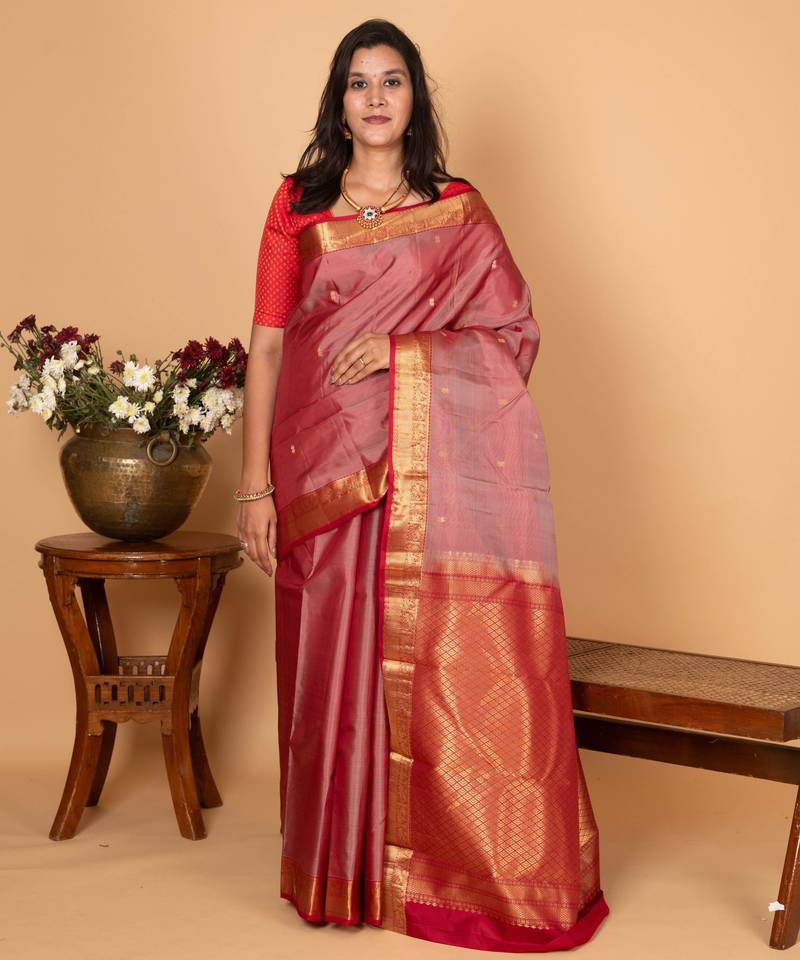 Dual Tone Red And Apple Red Pure Kanjivaram Silk Saree