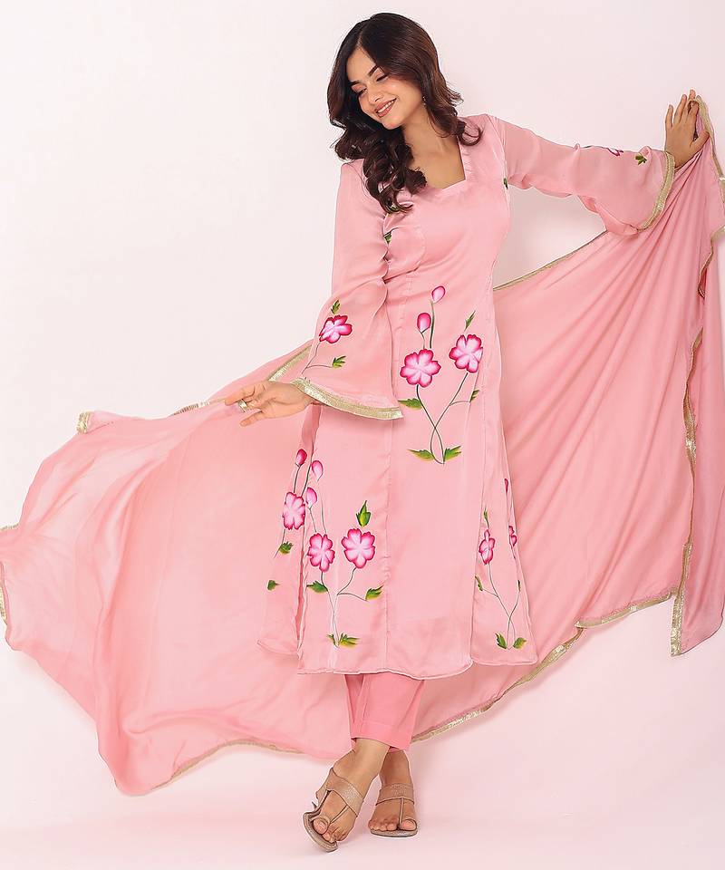 • Product Id : 4695633 • Package Details : 1 Kurta,1bottom,1dupatta • Type : Kurta Sets • Look : Designer • Sleeve : Full Sleeve • Fabric : Satin • Color : Pink • Work : Floral Print • Stitching : Stitched • Neck Style : Square Neck Kameez Payments [+]