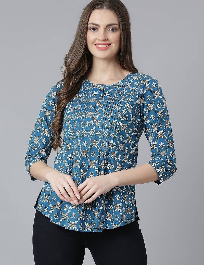 If you find the product for less we'll match it! Know MorePintucks at front; ethnic print motifs; shaped hem; 3/4 sleeves; no lining