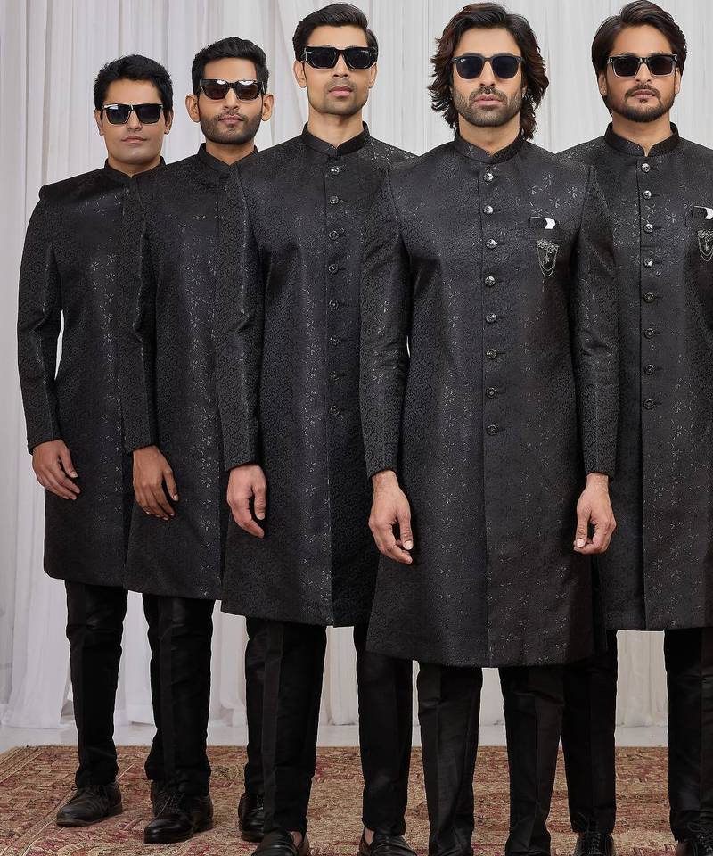 Black Jacquard Indo Western For Men