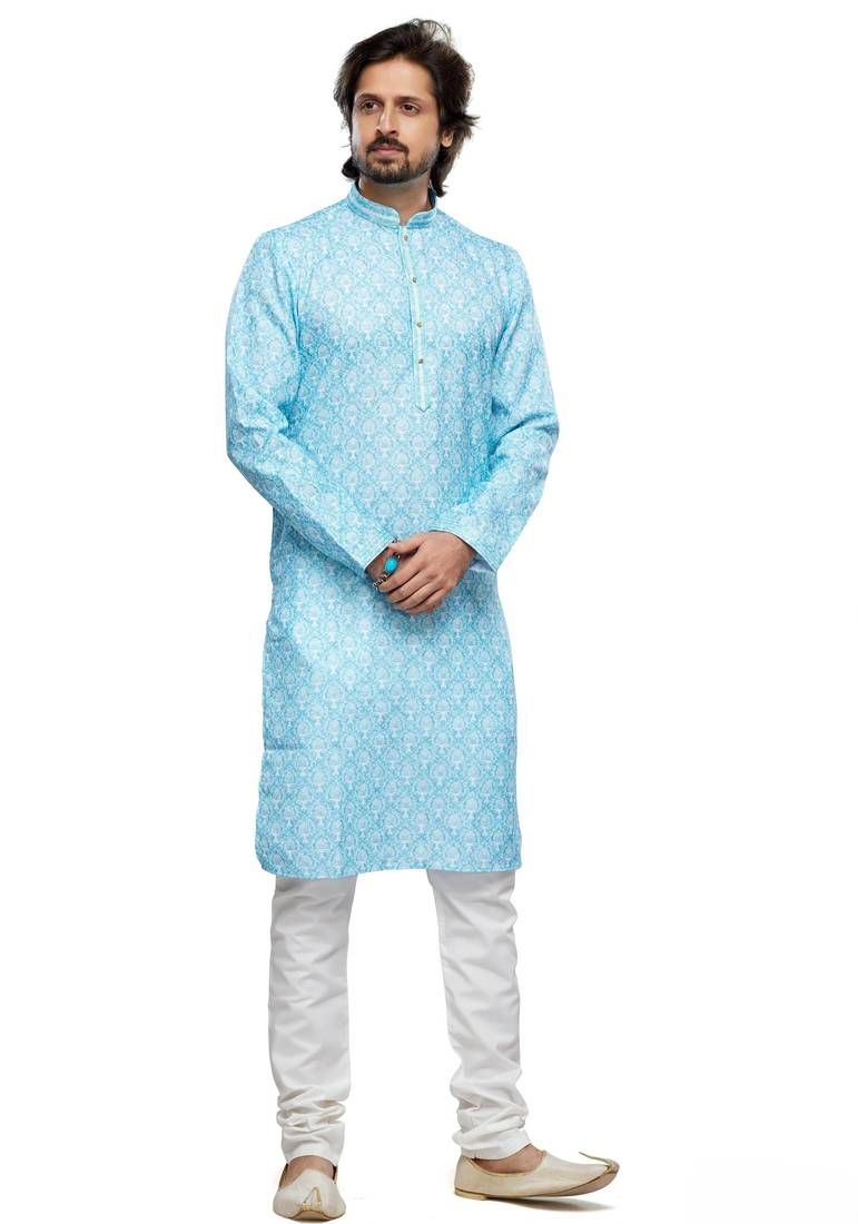 Blue Cotton Straight Kurta For Men