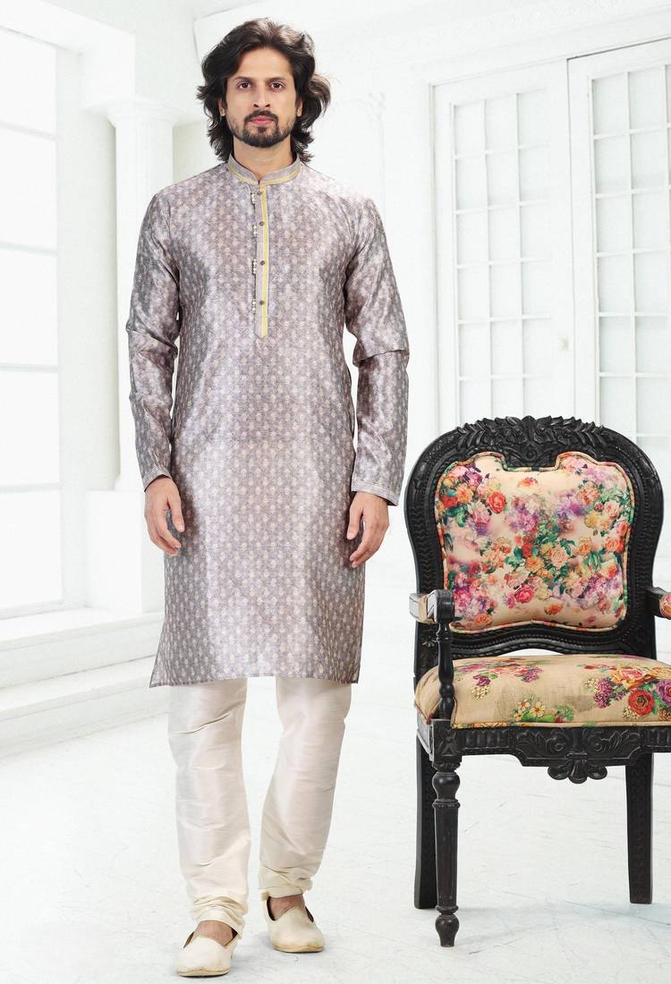 Grey Art Silk Straight Kurta For Men