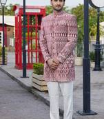 Men Dark Onion Computer Thread Work On Velvet Indo Western