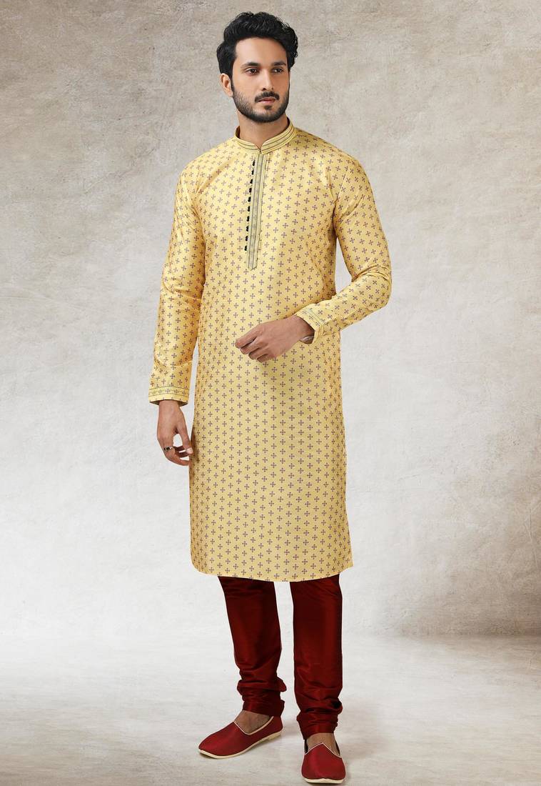 • Product Id : 4715752 • Package Details : 1 Top : 1 Bottom • Type : Kurta Pajama • Fabric : Art Silk • Work : Embroidered • Look : Designer • Bottom Style : Churidar • Sleeve : Full Sleeve • Color : Yellow • Top Color : Yellow • Top Fabric : Art Silk • Stitching : Stitched Payments [+]