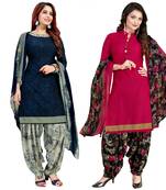 • Product Id : 3273402 • Package Details : 2 Top / 2 Bottom / 2 Dupatta • Type : Combo Salwar • Occasion : Casual • Work : Printed • Look : Traditional • Sleeve : Quarter Sleeve • Stitching : Unstitched • Fabric : Crepe • Color : Blue,Red Stitching [+]