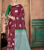 Classy Saree look pretty like never before.Wearing this Maroon Color Saree which made from Banarasi Silk With Green Color Banarasi Silk blouse, Saree has also decorative work like Zari.This beautiful Saree features a classy Weaving Work Work all over,which makes it a smart pick for all occasions. You can wear this Saree in different styles. You can wear it occasionally or casually.