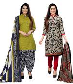Multicolor Cotton Blend Printed Unstitched Salwar Suit Material (Combo Of 2)