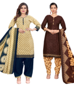 Women Multicolor Cotton Printed Ready To Wear Patiala Salwar Suit Combo Pack Of 2 Stitched