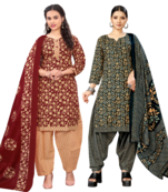 Women Multicolor Cotton Printed Ready To Wear Patiala Salwar Suit Combo Pack Of 2 Stitched