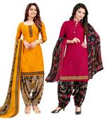 • Product Id : 3273333 • Package Details : 2 Top / 2 Bottom / 2 Dupatta • Type : Combo Salwar • Occasion : Casual • Work : Printed • Look : Traditional • Sleeve : Quarter Sleeve • Stitching : Unstitched • Fabric : Crepe • Color : Yellow,Red Stitching [+]