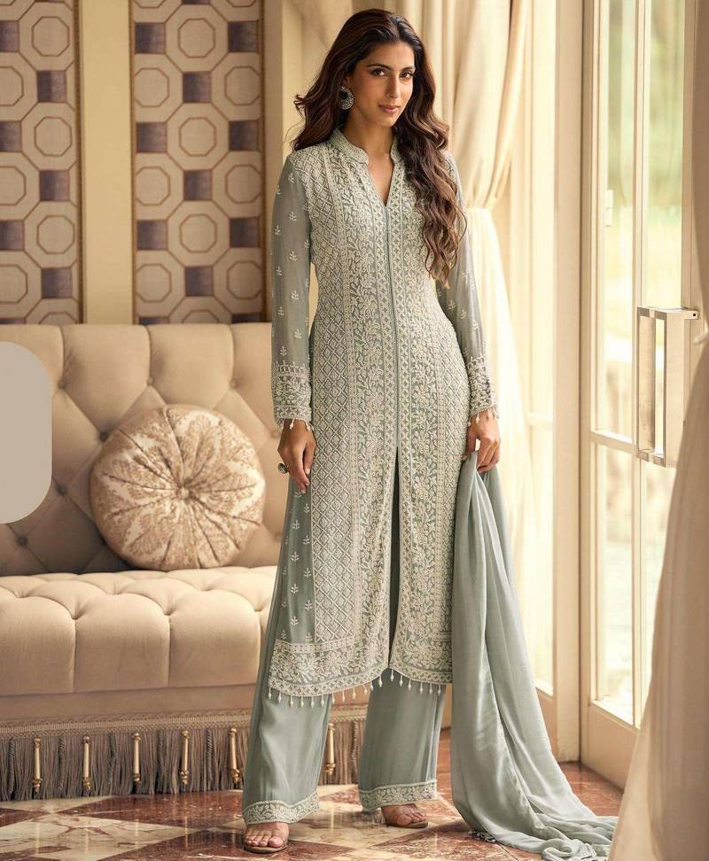 Women's Latest Sea_Green Georgette party-wear-salwar-kameez Semi-Stitched.This Suit Makes You Awesome And Gives You Most Trendy Look..This Is Suit Perfect For Party Wear,Office Wear,Weeding Wear And Festive Wear And Also Makes You Star Of Party