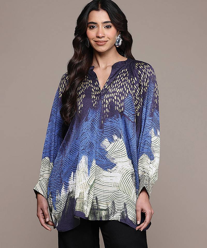 Components: 1 Top• Product Id : 4759605 • Package Details : 1 Top • Type : Kurtis • Fabric : Viscose • Work : Printed • Type : Abstract Print • Look : Fashion • Sleeve : Full Sleeve • Color : Blue • Stitching : Stitched • Length : 30.0 General - Color and Texture may have slight variation. This happens because of photography.