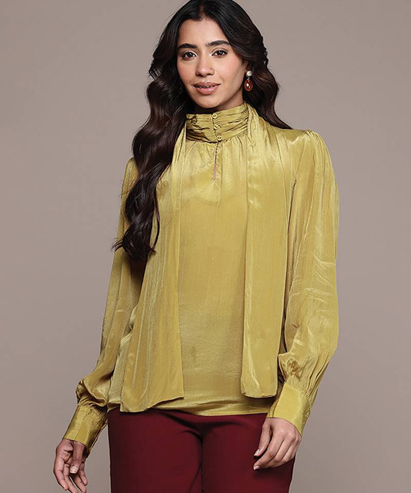 If you find the product for less we'll match it! Know MoreThis Mustard Crepe Full Sleeves Top Features A Smooth, Lightweight Fabric With A Flattering Silhouette. The Vibrant Color Adds A Stylish Touch, While The Comfortable Fit Makes It Perfect For Everyday Wear. A Versatile Piece That Pairs Effortlessly With Both Casual And Semi-Formal Outfits.