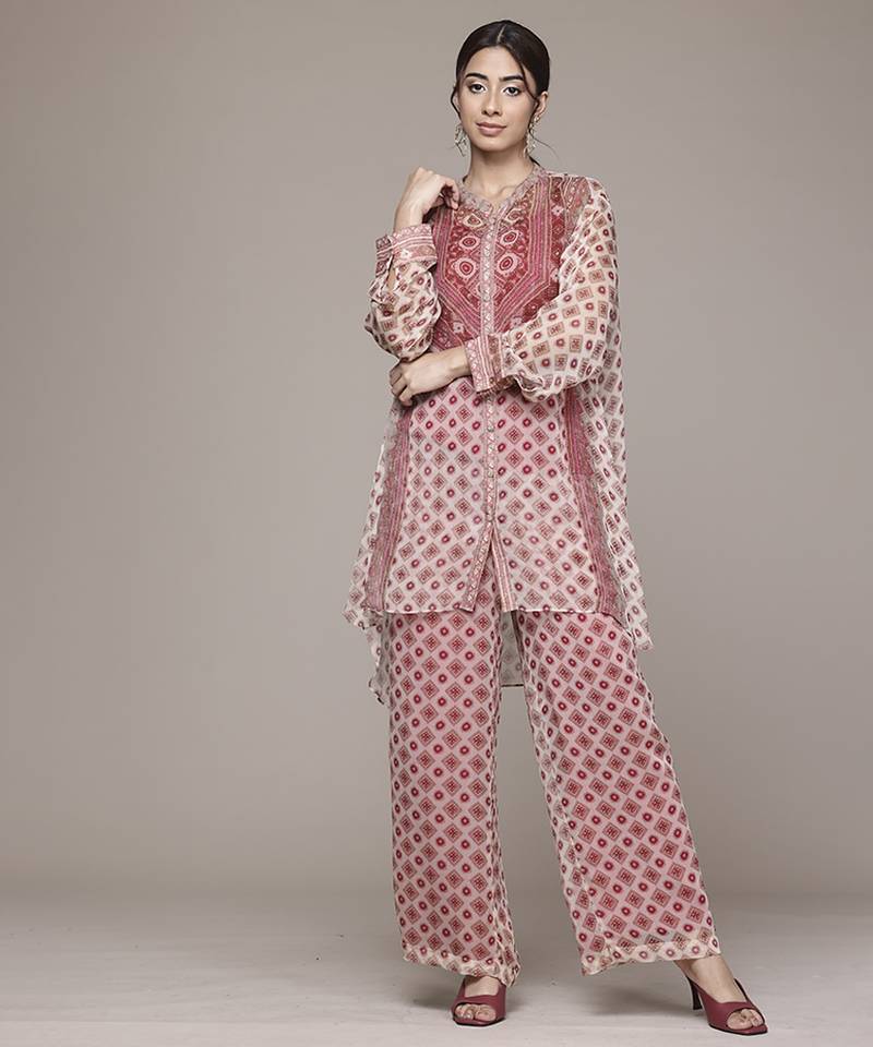 If you find the product for less we'll match it! Know Morethis red chiffon kurta set features printed work across a lightweight and flowy fabric. the chiffon material ensures a soft and breathable feel, suitable for festive occasions and celebrations. the set includes a kurta, coordinated bottoms, and a dupatta for complete styling. full sleeves provide a structured and balanced silhouette. the printed design adds visual detail while maintaining a clean and consistent look. the stitched construction ensures a ready to wear form. the red shade enhances styling versatility for traditional occasions.