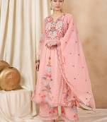• Color : Peach • Fabric : Faux Georgette • Style : Palazzo • Color : Peach Dupatta Details