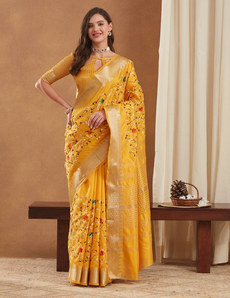 • Border : Designer Border • Fabric Of : Cotton • Color : Yellow • Color : Yellow Blouse Details