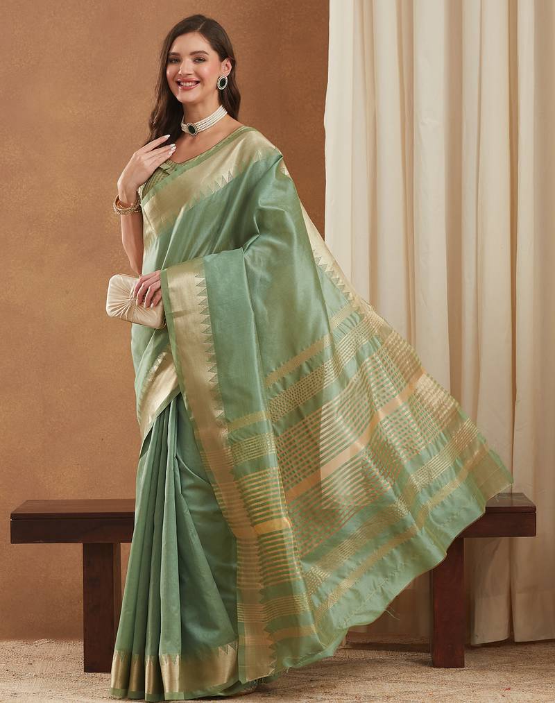 • Saree : Color- Light Green / Fabric- Cotton • Blouse : Color- Light Green / Fabric- Art Silk Saree Details