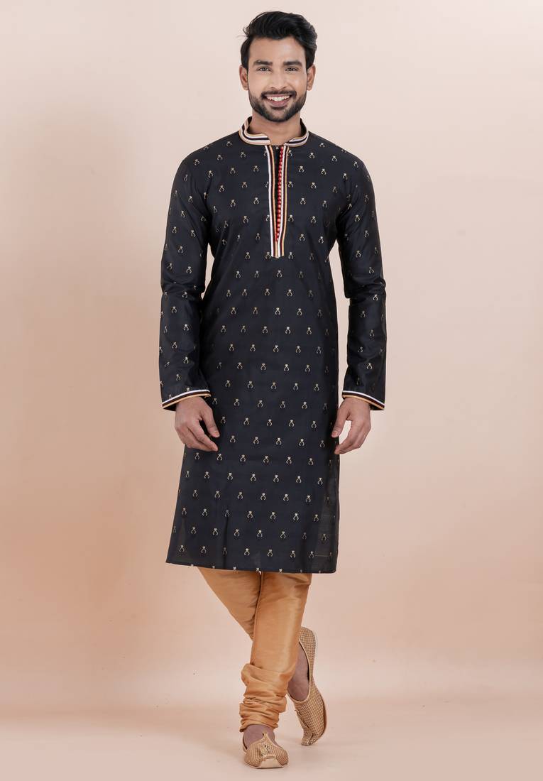 • Product Id : 4751664 • Package Details : 1 Top/1 Bottom • Type : Kurta Pajama • Fabric : Cotton Silk • Work : Woven • Bottom Style : Churidar • Color : Black • Bottom Fabric : Silk • Bottom Color : White • Top Color : Black • Top Fabric : Cotton Silk • Stitching : Stitched General - Color and Texture may have slight variation. This happens because of photography.