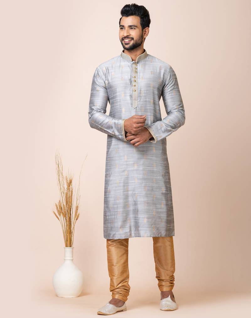 Grey Designer Festive Wear Cotton Silk Kurta Pajama