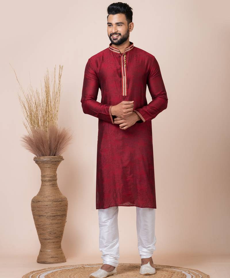 Maroon Designer Festive Wear Jacquard Kurta Pajama