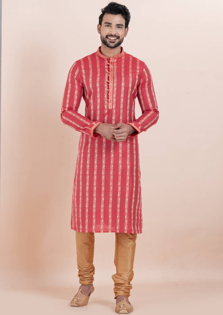 • Product Id : 4751659 • Package Details : 1 Top/1 Bottom • Type : Kurta Pajama • Fabric : Cotton Silk • Work : Woven • Bottom Style : Churidar • Color : Pink • Bottom Fabric : Silk • Bottom Color : Gold • Top Color : Pink • Top Fabric : Cotton Silk • Stitching : Stitched General - Color and Texture may have slight variation. This happens because of photography.