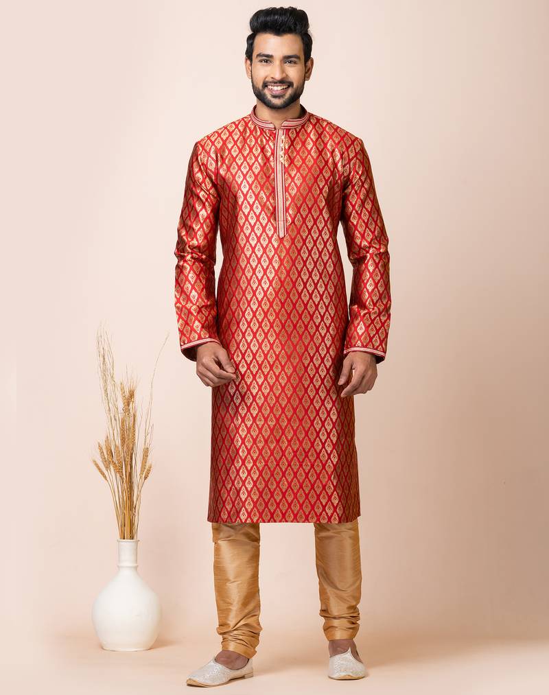 Red Designer Festive Wear Jacquard Kurta Pajama