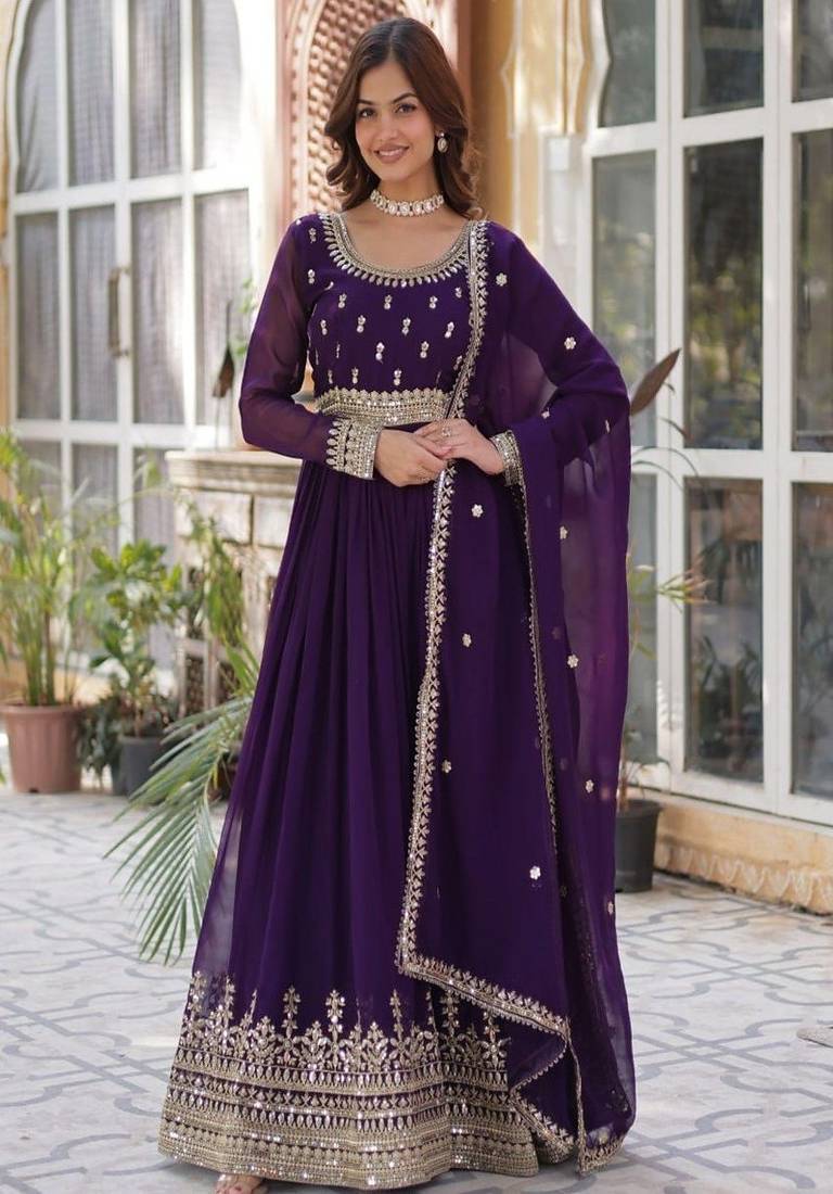 Stunning Full Sleeves Round Neck Gown With Lace Border Dupatta
