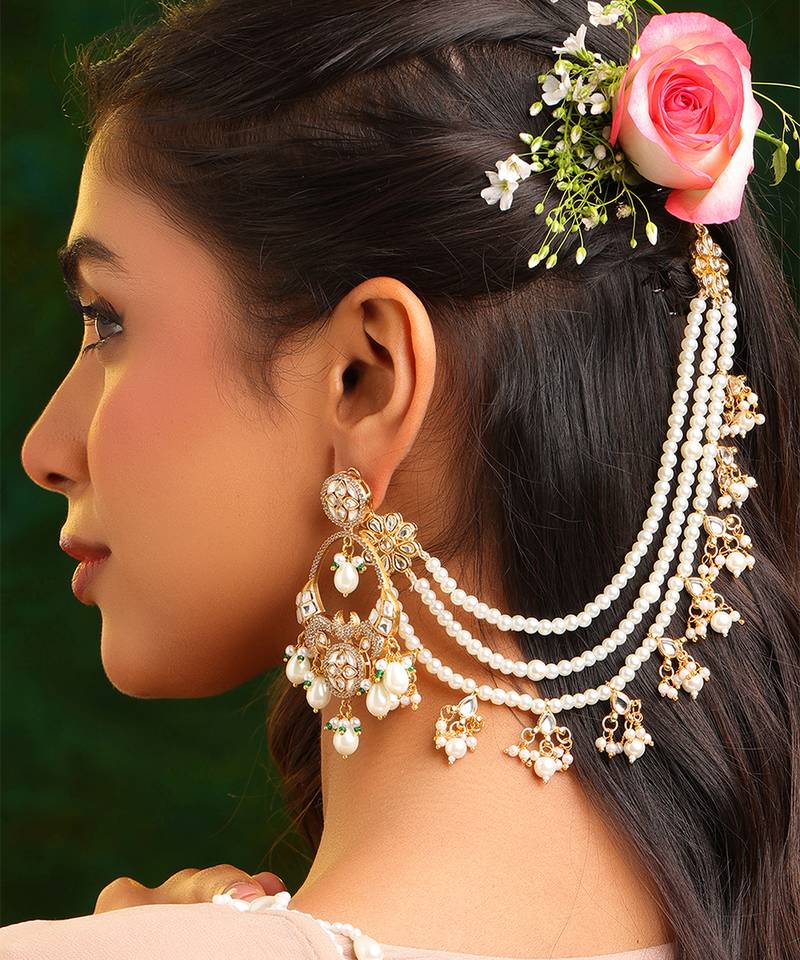 • Product Id : 4697265 • Package Details : 1 Kaan Chain • Type : Earrings • Occasion : Wedding • Look : Traditional • Jewellery Work : Kundan • Color : Gold • Plating : Yellow Gold • Base Material : Brass Payments [+]