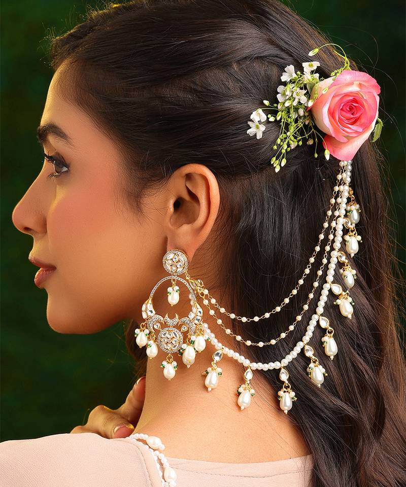 • Product Id : 4697264 • Package Details : 1 Kaan Chain • Type : Earrings • Occasion : Wedding • Look : Traditional • Jewellery Work : Kundan • Color : Gold • Plating : Yellow Gold • Base Material : Brass Payments [+]