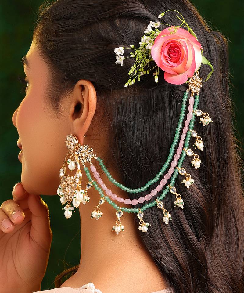 • Product Id : 4697266 • Package Details : 1 Kaan Chain • Type : Earrings • Occasion : Wedding • Look : Traditional • Jewellery Work : Kundan • Color : Multicolor • Plating : Yellow Gold • Base Material : Brass Payments [+]