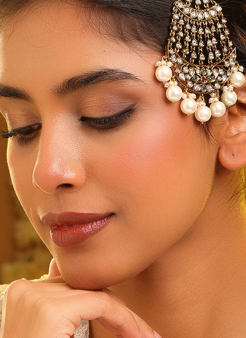 This Gold Plated Kundan Multicolor Stones Passa Features Vibrant Hues And Intricate Craftsmanship. Embellished With Multicolor Stones And Classic Kundan Work, It Adds A Regal Charm To Bridal Hairstyles. Ideal For Weddings And Festive Celebrations, This Passa Complements Traditional Outfits With Rich Elegance.