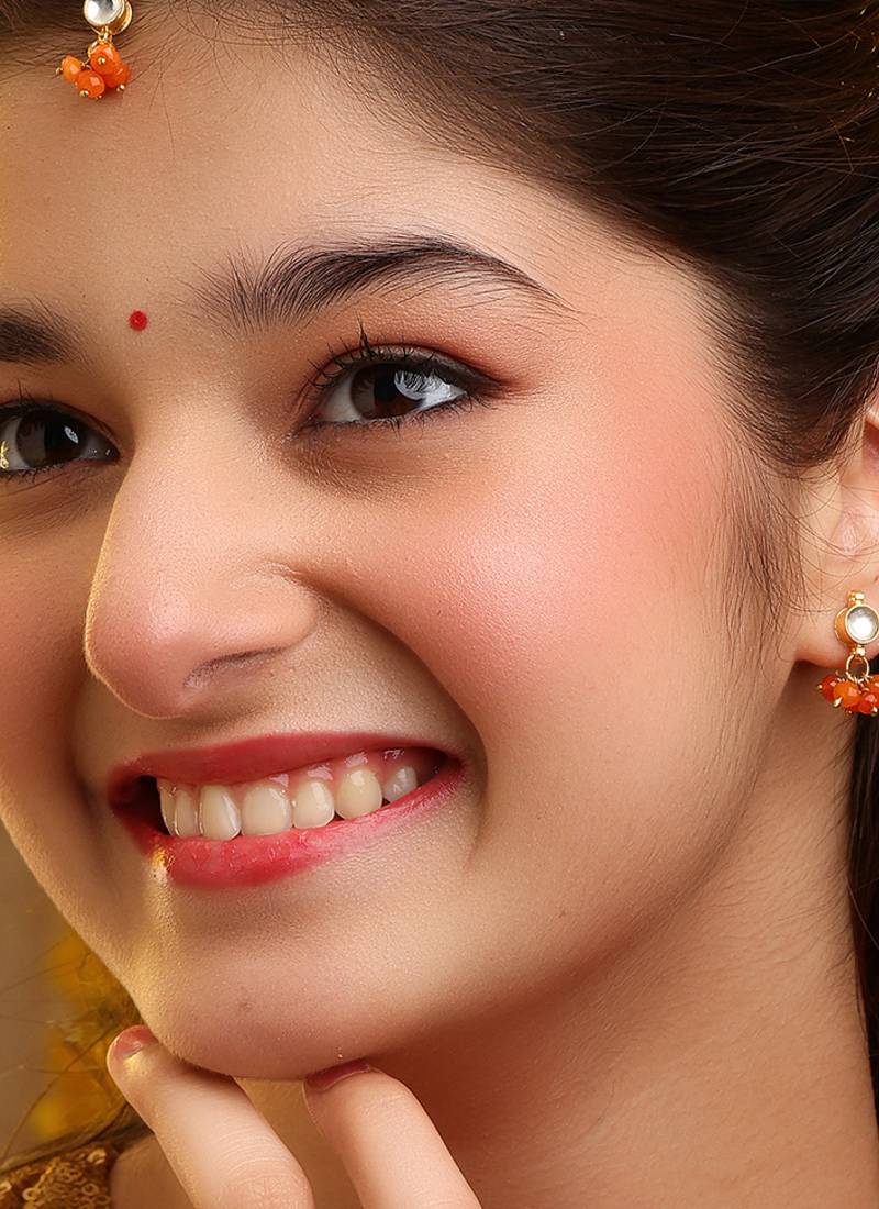 • Color : Orange • Work : Kundan Earings Details