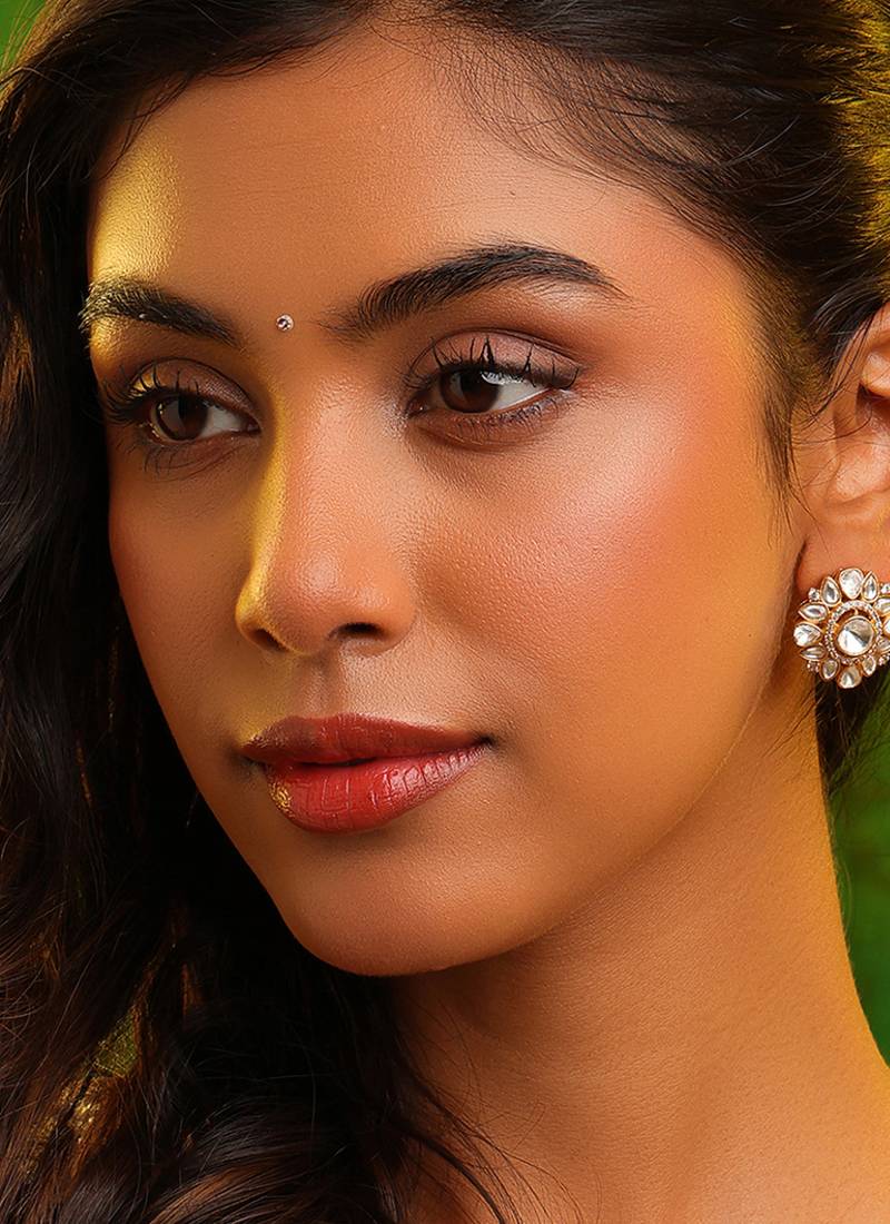 These Gold Plated Kundan Studs Reflect Classic Beauty And Minimal Elegance. Crafted With Traditional Kundan Detailing, They Offer A Subtle Yet Refined Look. Ideal For Festive Occasions, Weddings, Or Daily Ethnic Wear, These Studs Pair Effortlessly With Sarees, Lehengas, And Fusion Outfits.