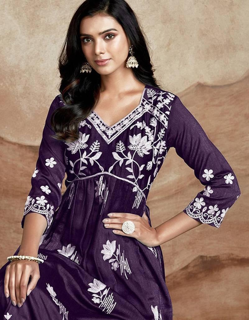 If you find the product for less we'll match it! Know More• Product Id : 4748322 • Package Details : 1 Kurta • Type : Long Kurti Designs • Fabric : Silk • Work : Woven • Type : Abstract Print • Sleeve : Full Sleeve • Neck Style : V Neck • Color : Purple • Stitching : Stitched • Length : 44.0 General - Color and Texture may have slight variation. This happens because of photography.