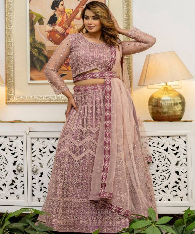• Style : Circular Lehenga • Fabric : Net • Work : Embroidered • Color : Pink Dupatta Details